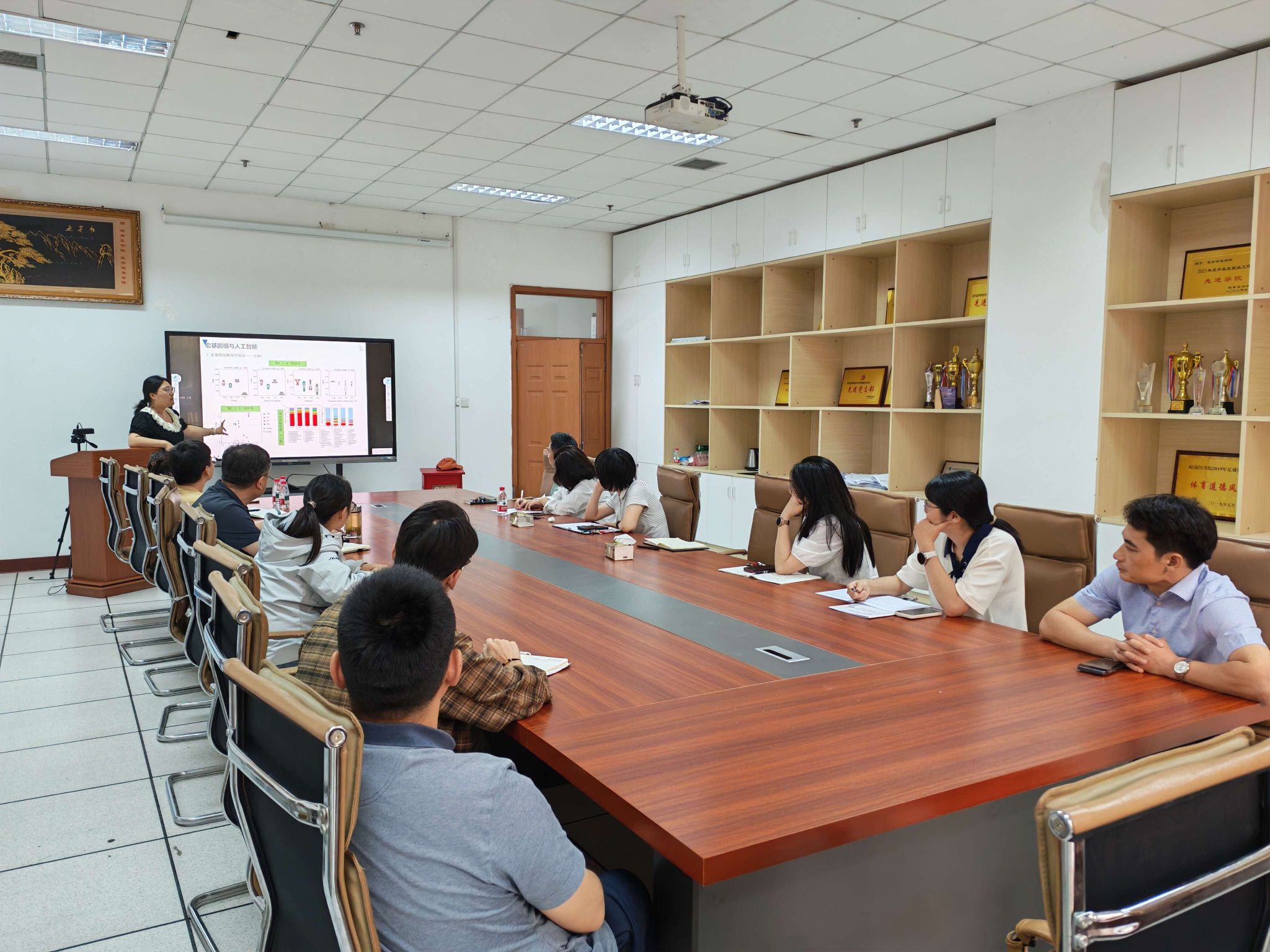 报告互动环节,安笑迟博士与参会人员针对人工智能应用于宏基因组与疾病研究之间交叉研究进行热烈讨论。此次报告既有系统性阐述,又有细节性拓展,内容丰富、深入浅出,现场互动交流热烈。(丁沛乔/文、摄)
