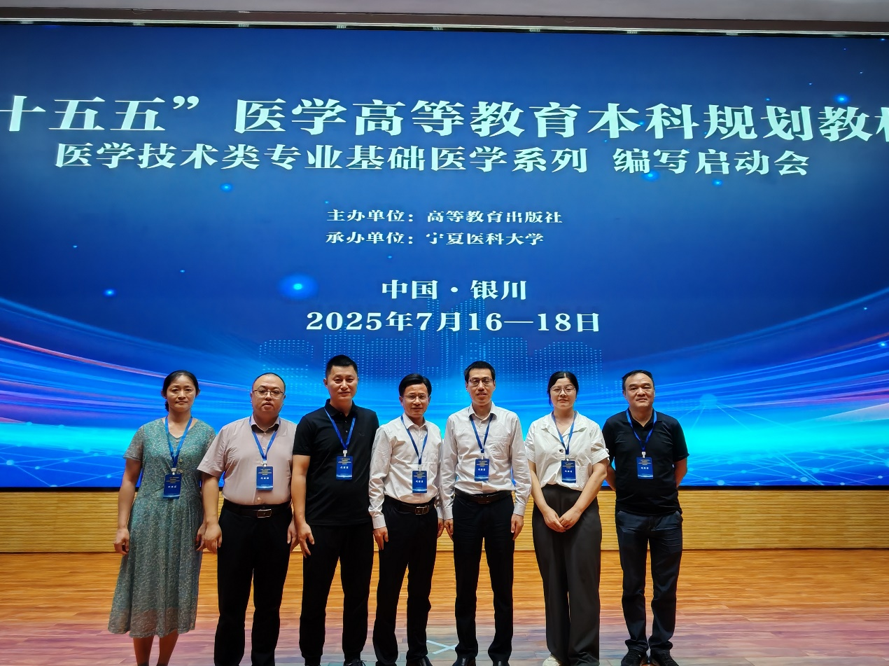 近日,高等教育出版社“十五五”医学高等教育本科规划教材——医学技术类专业基础医学系列教材编写启动会在宁夏医科大学召开。我校教师深度参与此次国家级教材建设,基础医学院李曙教授担任《病理生理学》主编,余方流教授担任《医学微生物学》副主编,徐蕾教授、缪化春教授、王林副教授分别任《生物化学与分子生物学》《局部解剖学》《病理生理学》编委,检验学院孙恩涛教授担任《医学寄生虫学》副主编,药学院熊莺副教授任《药理学》编委。
